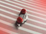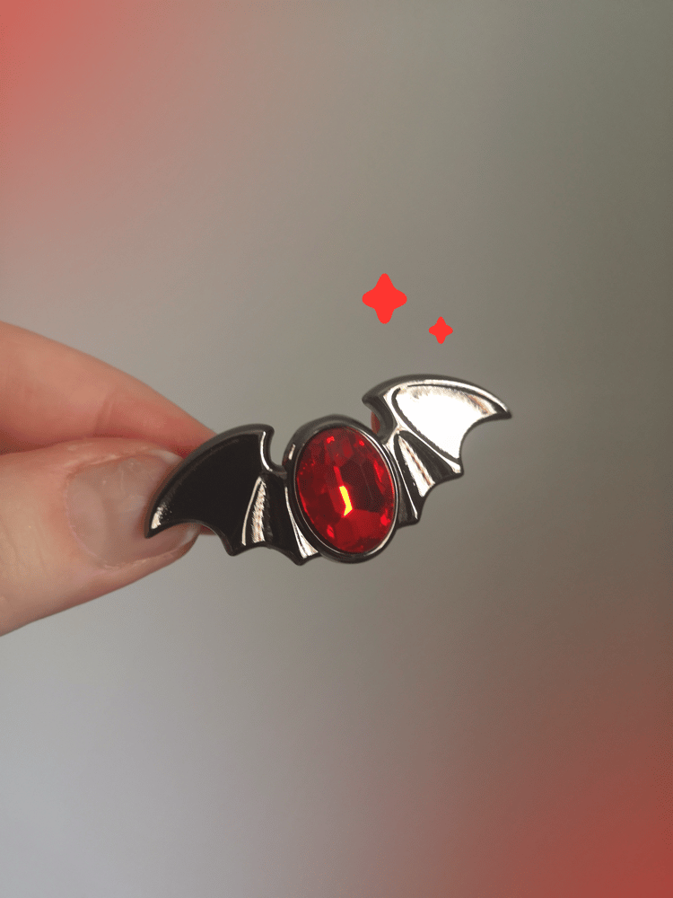 4,5cm width. Red acrylic gem with volume not flat and metal with volume as well.