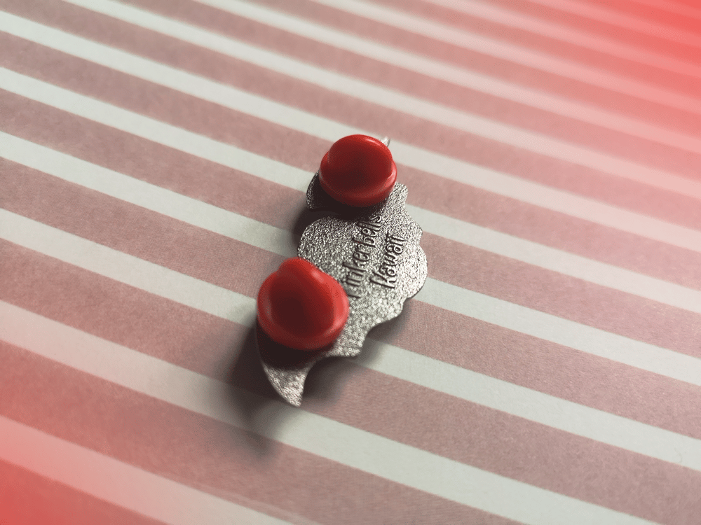 Hard enamel pin in black/silver metal color. 2 clutch. back stamp name in the back.
