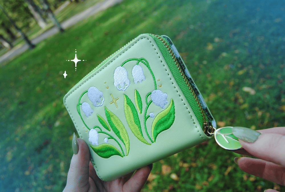 The Wallet is made with vegan leather with custom fabric in some inside parts with flowers matching the color.