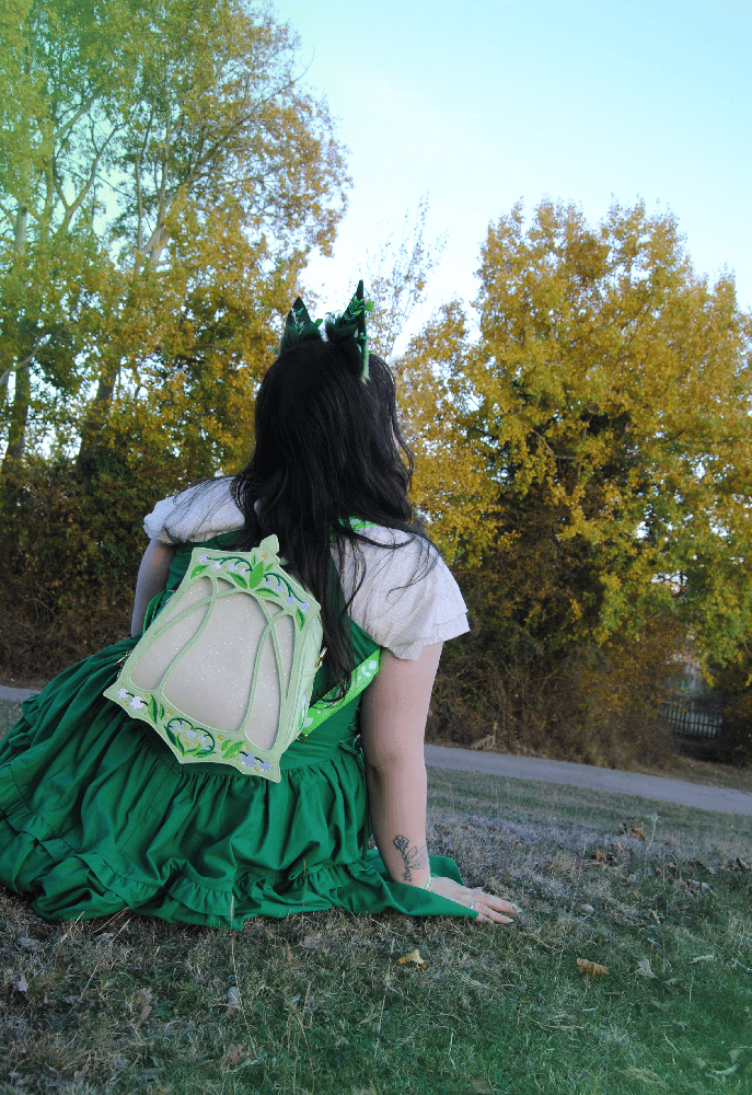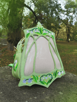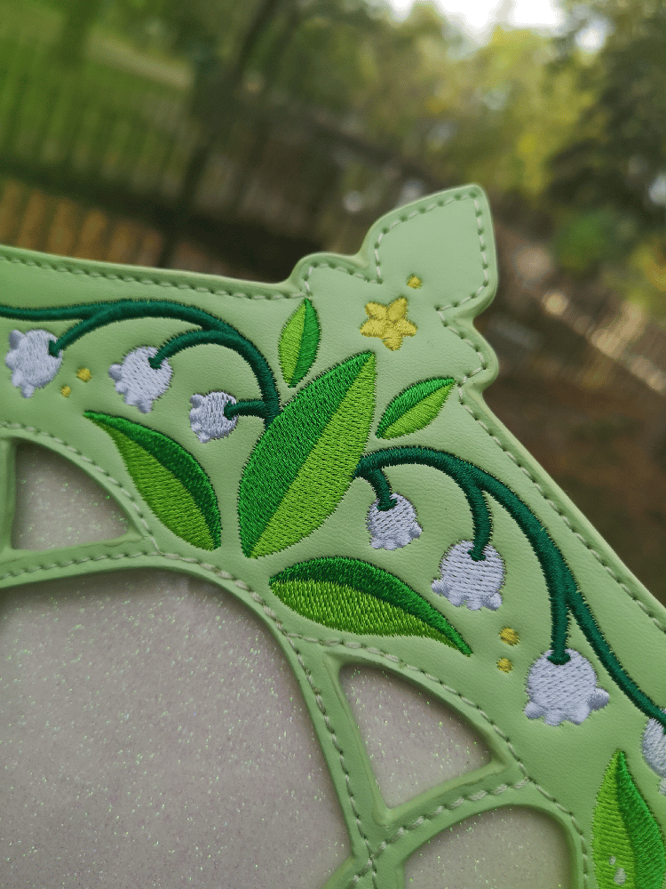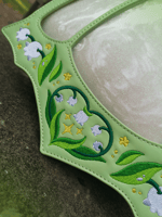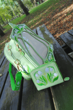 This Ita Bag is made with vegan leather with flowers custom fabric inside of the biggest compartment has an internal zipper plus 2 pockets and other zipper in the outside back. They have leafs enamel zippers and full embrodeired flowers in the frontal and sides. White glitter insert for pins included.