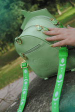 The bag have adjustable faux leather straps to hold in the 5 D-rings (3 on back, 2 on sides in gold) with swiveling lobster clasps in silver or gold so you can wear the Bag in different ways like: Crossbody Backpack Over the shoulder