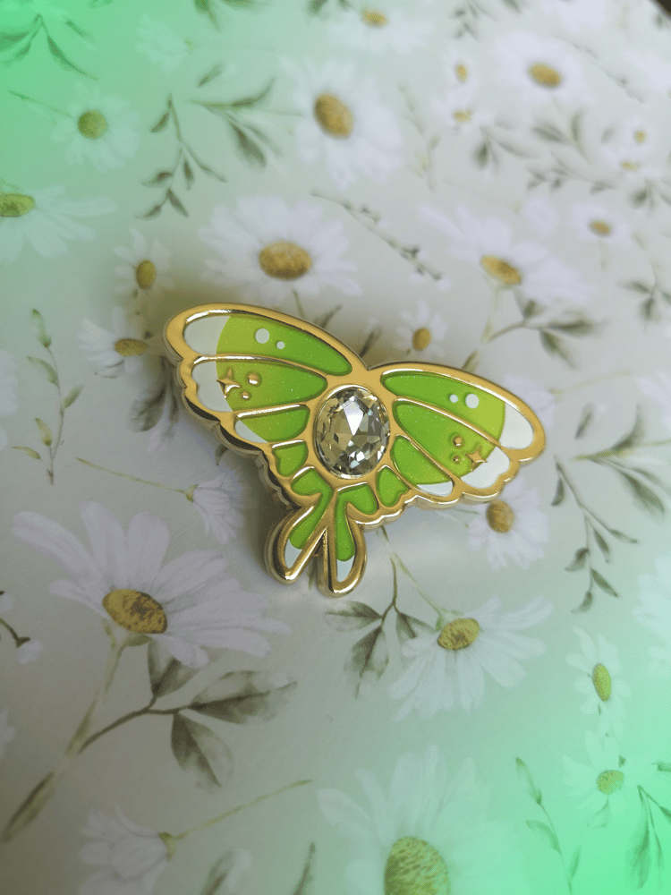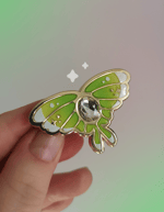Hard enamel pin, Gold metal color. 2 clutch. back stamp name in the back. 4,5cm width.