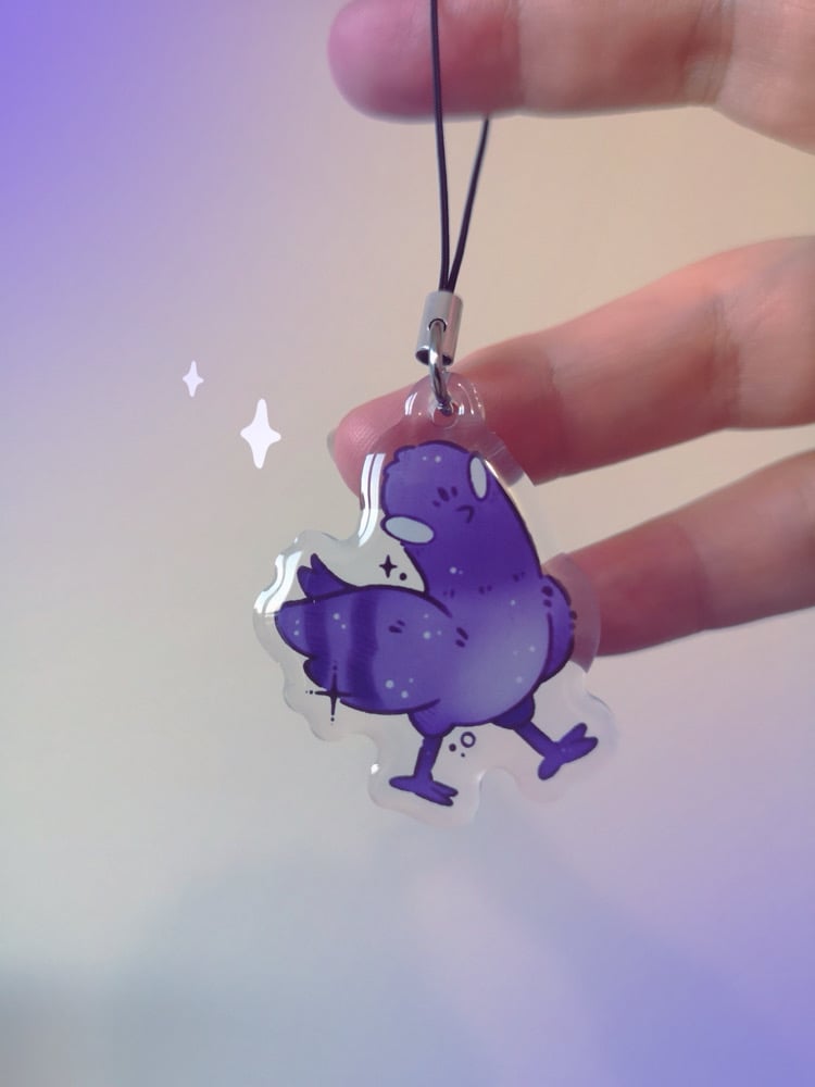 1 small acrylic charm with draw in both sides. 1 side epoxy. 4cm.