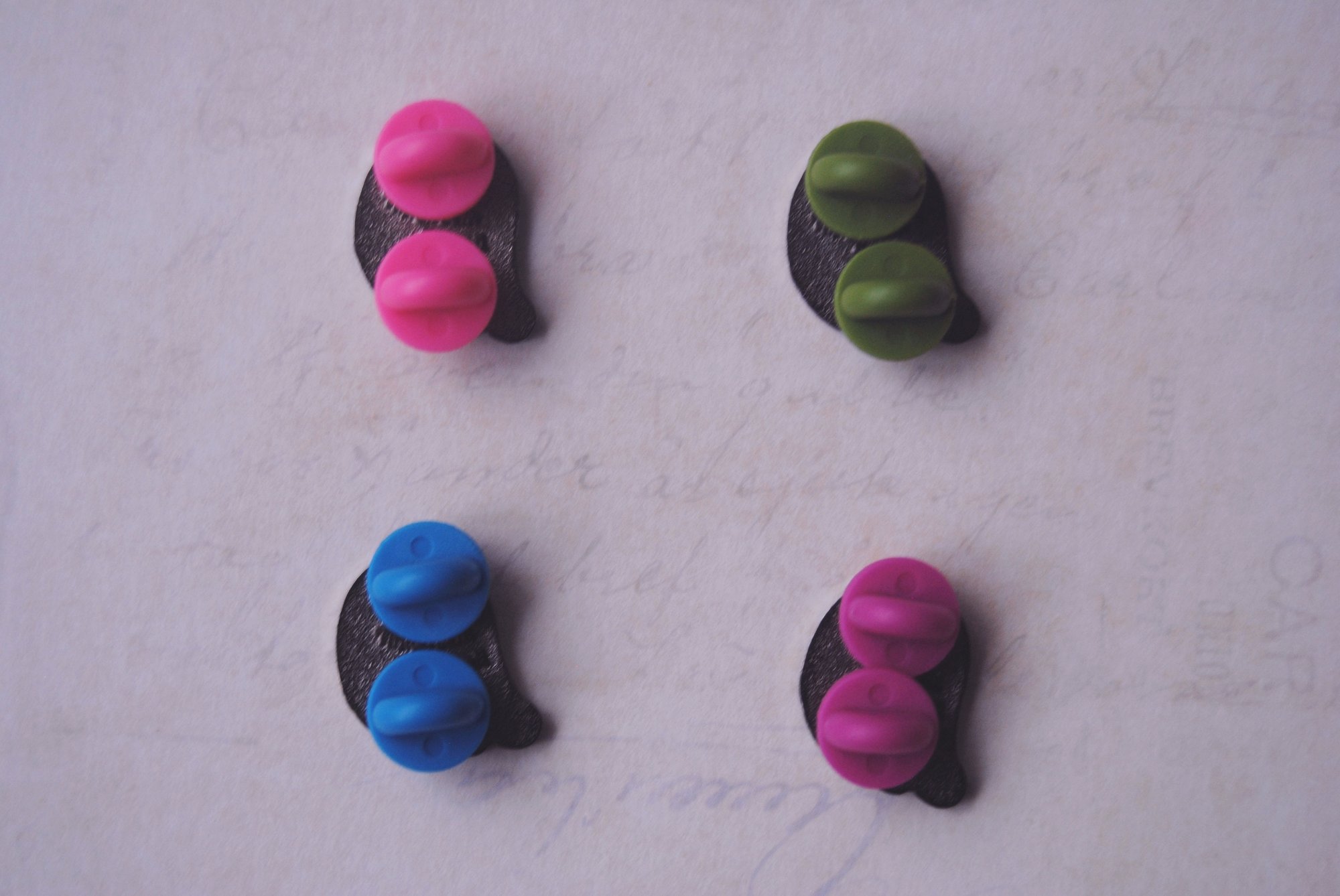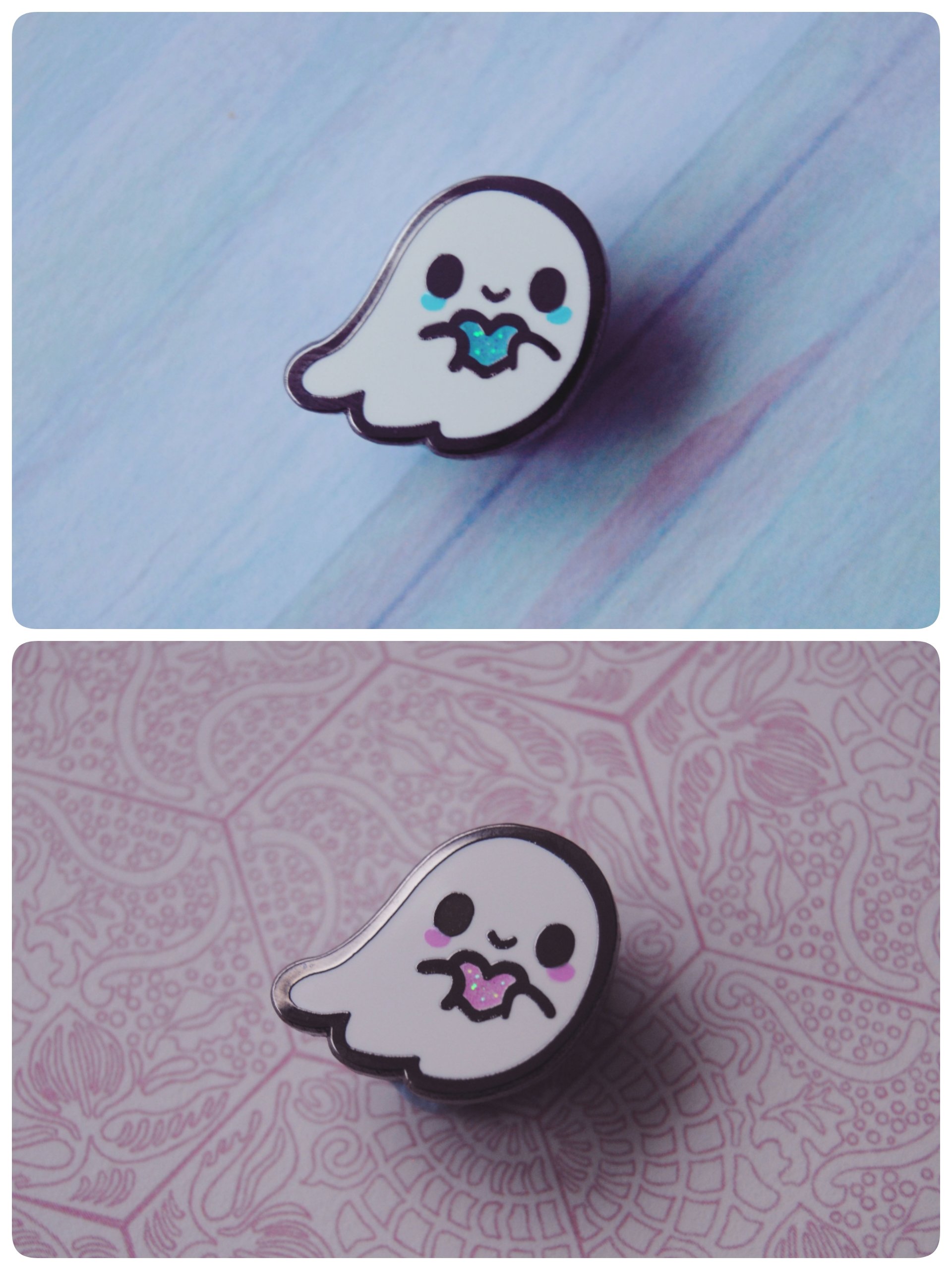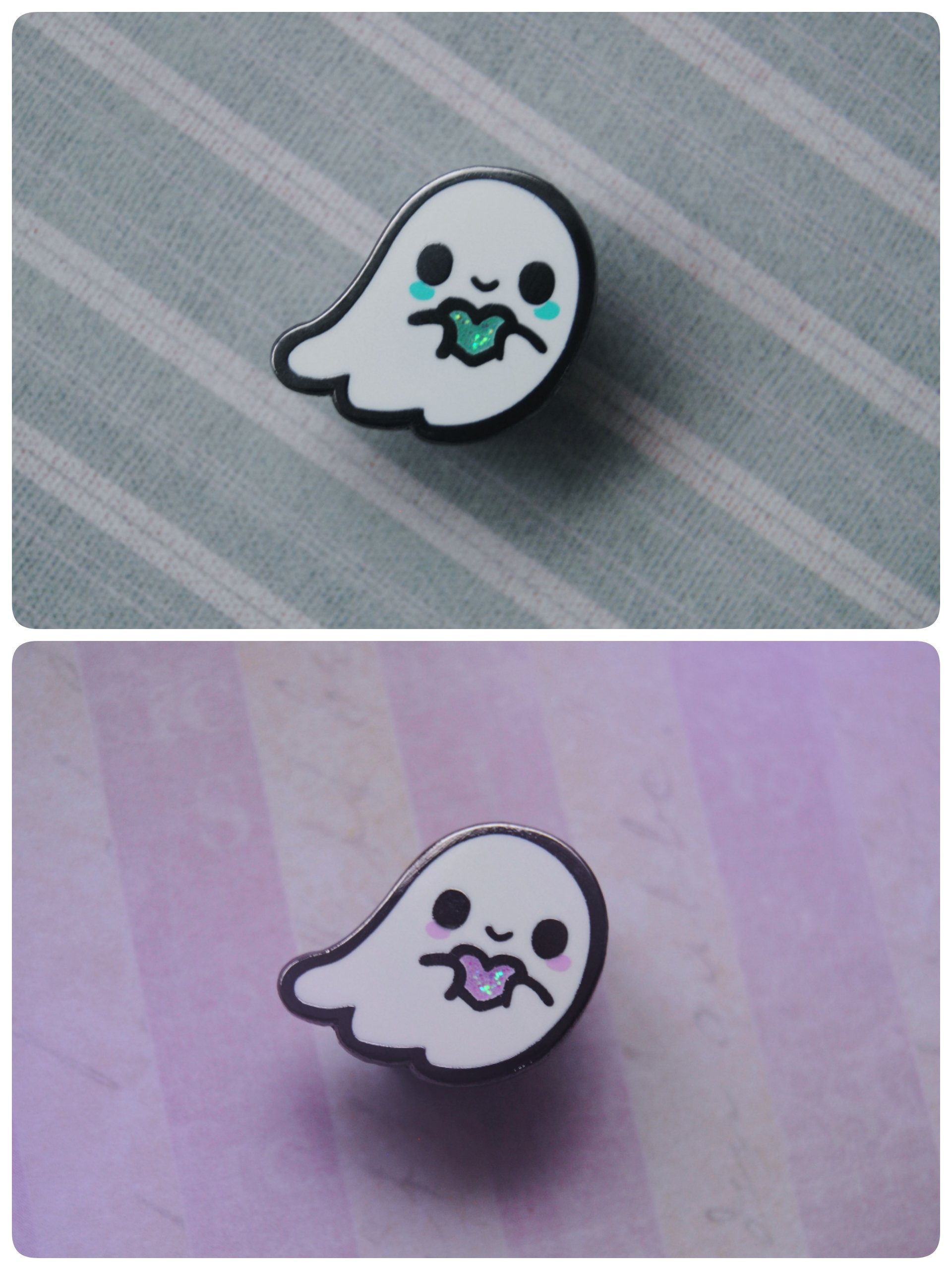 Hard enamel pin. Black metal color. 2 clutches. logo name in the back. 2cm of tall. glitter in the heart.